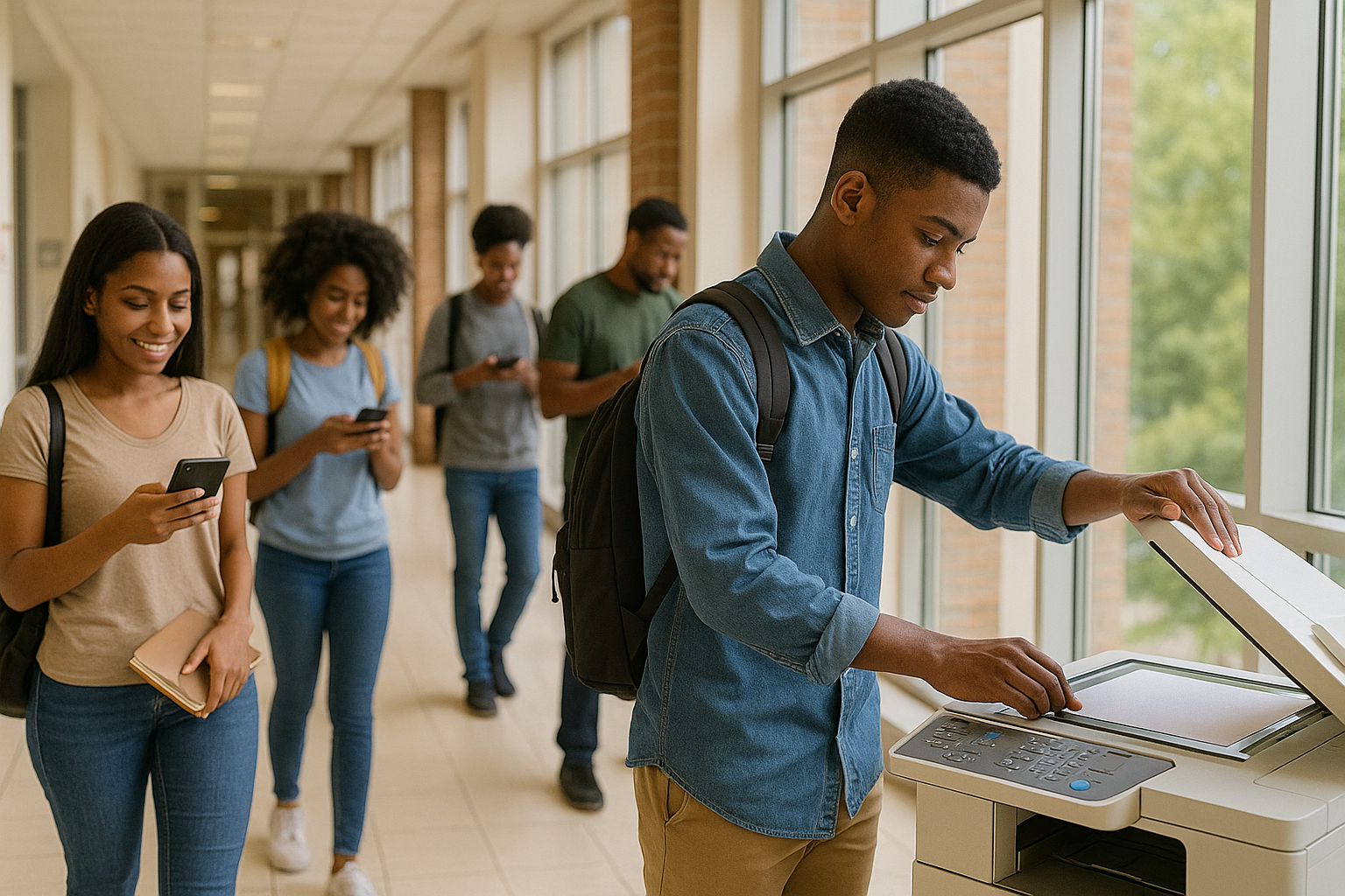 Nos bornes libre-service permettent aux étudiants d'imprimer rapidement leurs documents, de payer facilement avec mobile money, et d'accéder au service à tout moment.